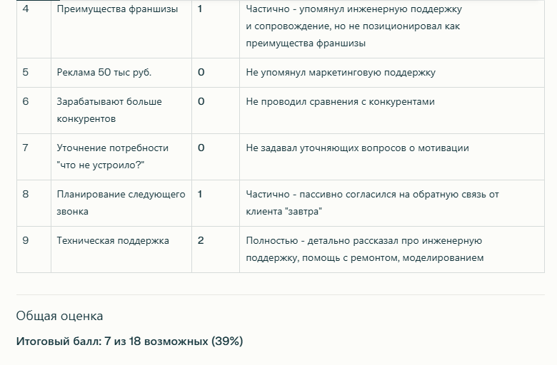Анализ звонка менеджера